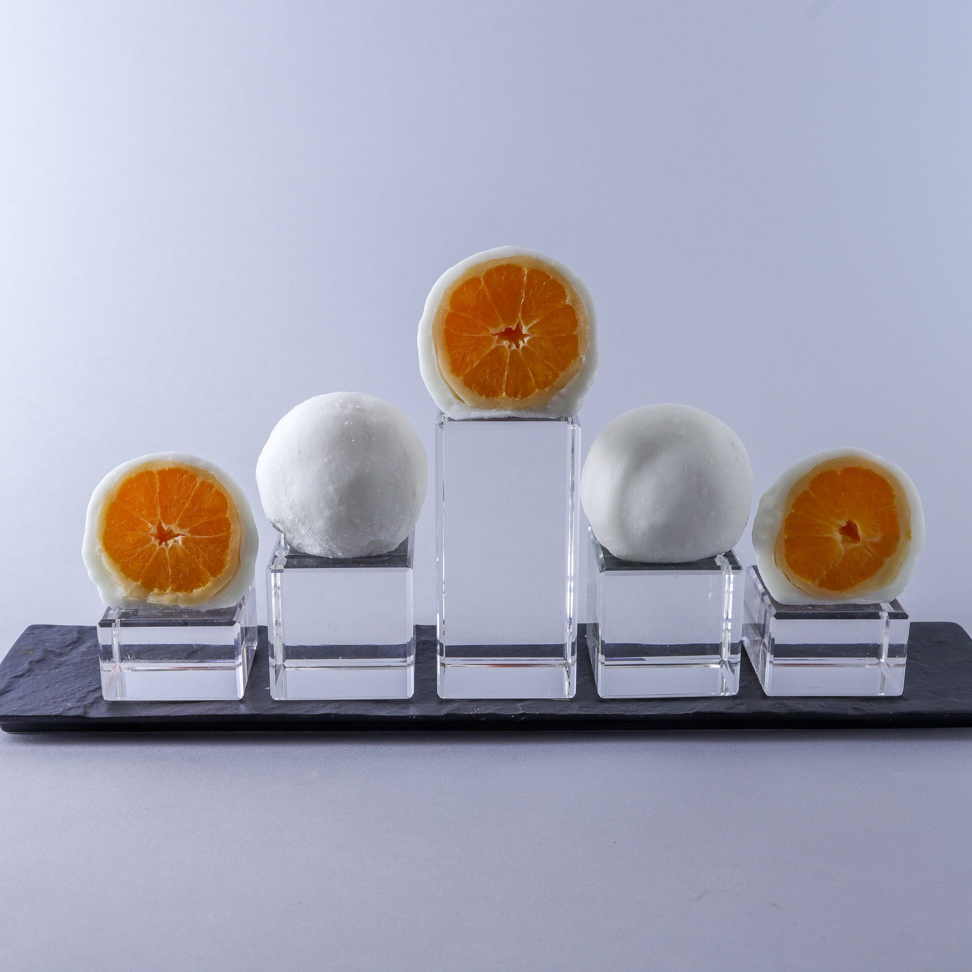 果汁たっぷりの和歌山県産みかんを自家製のみかん餡で包み、マシュマロのようなふわふわな大福餅で仕上げました。